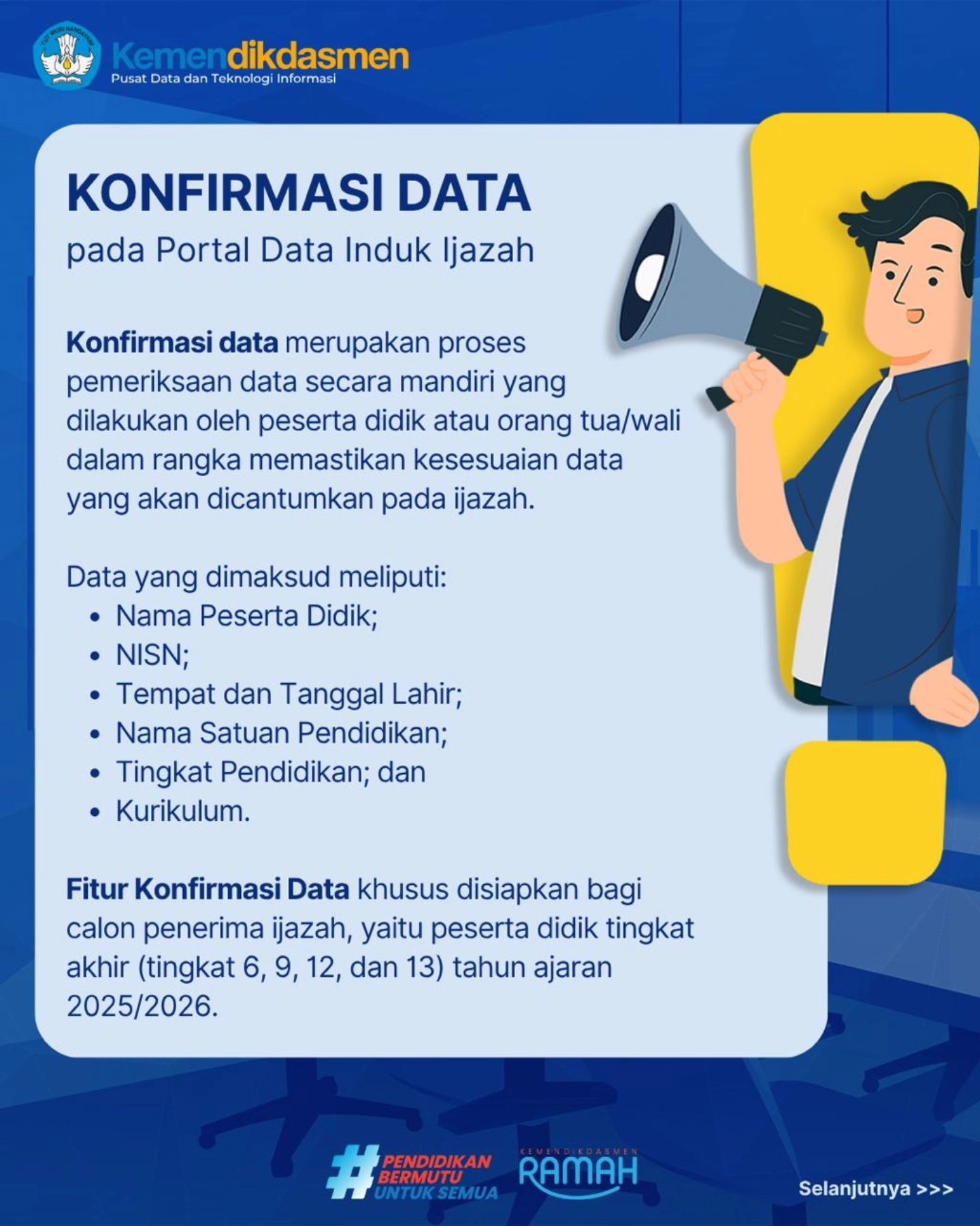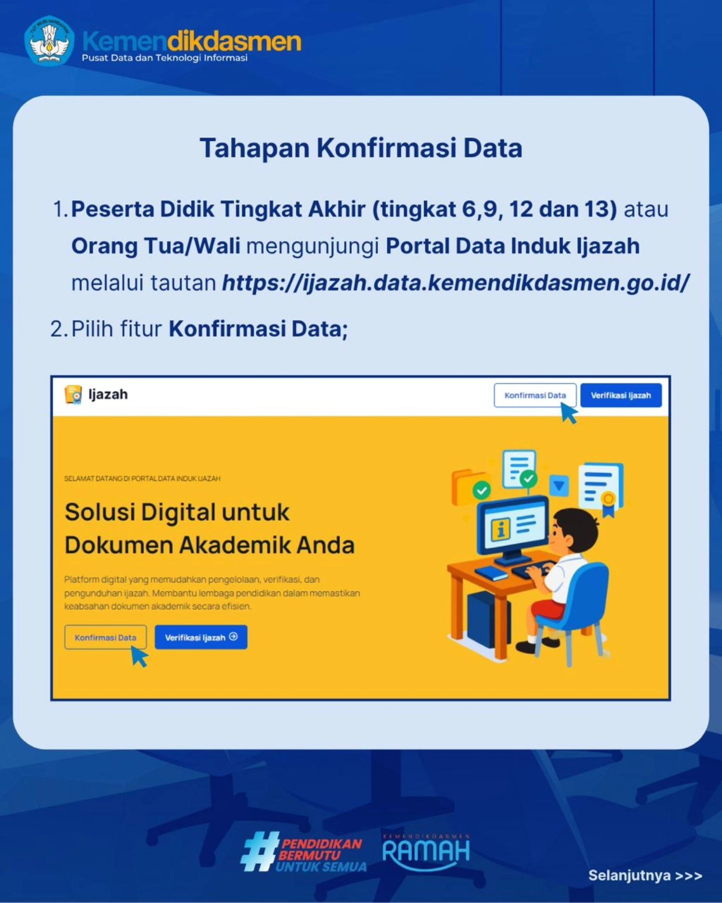 Buat peserta didik tingkat akhir 12 atau orang tua/wali — sekarang kamu bisa cek dan konfirmasi sendiri data yang akan tercantum di ijazah secara mandiri melalui Portal Data Induk Ijazah.